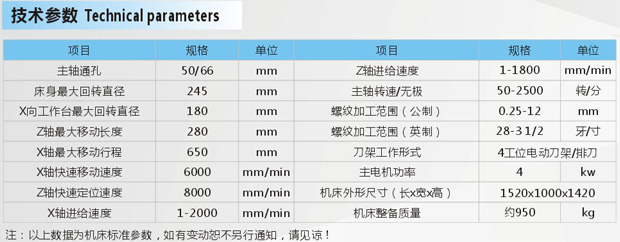 CJK0640经济型数控车床采用机电一体化设计,具有外形美观,结构合理,用途广泛,操作方便,一人多机等到优势,可实现多种产品的外圆/端面/内孔/切槽/任意锥面/球面和各种公英制螺纹的自动切削,并配有完善的S/T/M功能,可发出和接收多种信号,自动控制加工程序 特点 ★机床的底座宽,床身导轨结构合理,床头箱采用散热型结构设计,更有效的提高了机床的稳定性和主轴的平稳性。 ★机床主轴前后轴承均采用高精密的滚珠配对角接触轴承,工作时稳定性好,承载负荷大。 ★导轨采用耐磨铸铁铸造,并经超音频淬火及精磨,以保证长期稳定的机床加工精度及使用寿命 ★X轴采用四点一线式/Z轴丝杆采用中置三点一线式的结构设计,保证导轨在工作中更加平稳且不受侧力影响 ★Z向导轨采用全封闭式设计,在机床工作时能更好地对导轨进行防护 ★主轴法兰连接盘采用国际通用标准设计,液压卡盘安装更加方便快捷