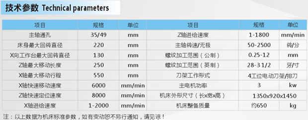 CJK0632经济型数控车床采用机电一体化设计,具有外形美观,结构合理,用途广泛,操作方便,一人多机等到优势,可实现多种产品的外圆/端面/内孔/切槽/任意锥面/球面和各种公英制螺纹的自动切削,并配有完善的S/T/M功能,可发出和接收多种信号,自动控制加工程序。 特点 ★.机床的底座宽,床身导轨结构合理,床头箱采用散热型结构设计,更有效的提高了机床的稳定性和主轴的平稳性。 ★.机床主轴前后轴承均采用高精密的滚珠配对角接触轴承,工作时稳定性好,承载负荷大。 ★.导轨采用耐磨铸铁铸造,并经超音频淬火及精磨,以保证长期稳定的机床加工精度及使用寿命 ★.X轴采用四点一线式/Z轴丝杆采用中置三点一线式的结构设计,保证导轨在工作中更加平稳且不受侧力影响 ★.Z向导轨采用全封闭式设计,在机床工作时能更好地对导轨进行防护。